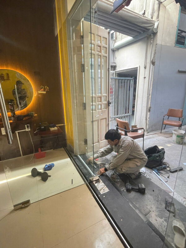 Mình vừa sửa xong bộ cửa kính cường lực văn phòng bên này. Thợ làm nhanh, nhiệt tình. Cửa đang xệ mà chỉnh phát đóng mở mượt ngay, không còn tiếng kêu nữa.